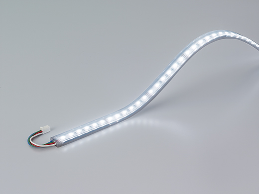 | 特徴 | 制御コントローラーで簡単に思い通りのカラーを選択可能 フレキブル トップビュー 最小曲げ半径50mm 連結可(1系統5000㎜以内) 全83サイズ(特寸76種類) 60mm毎で切断可能 電源別置 |